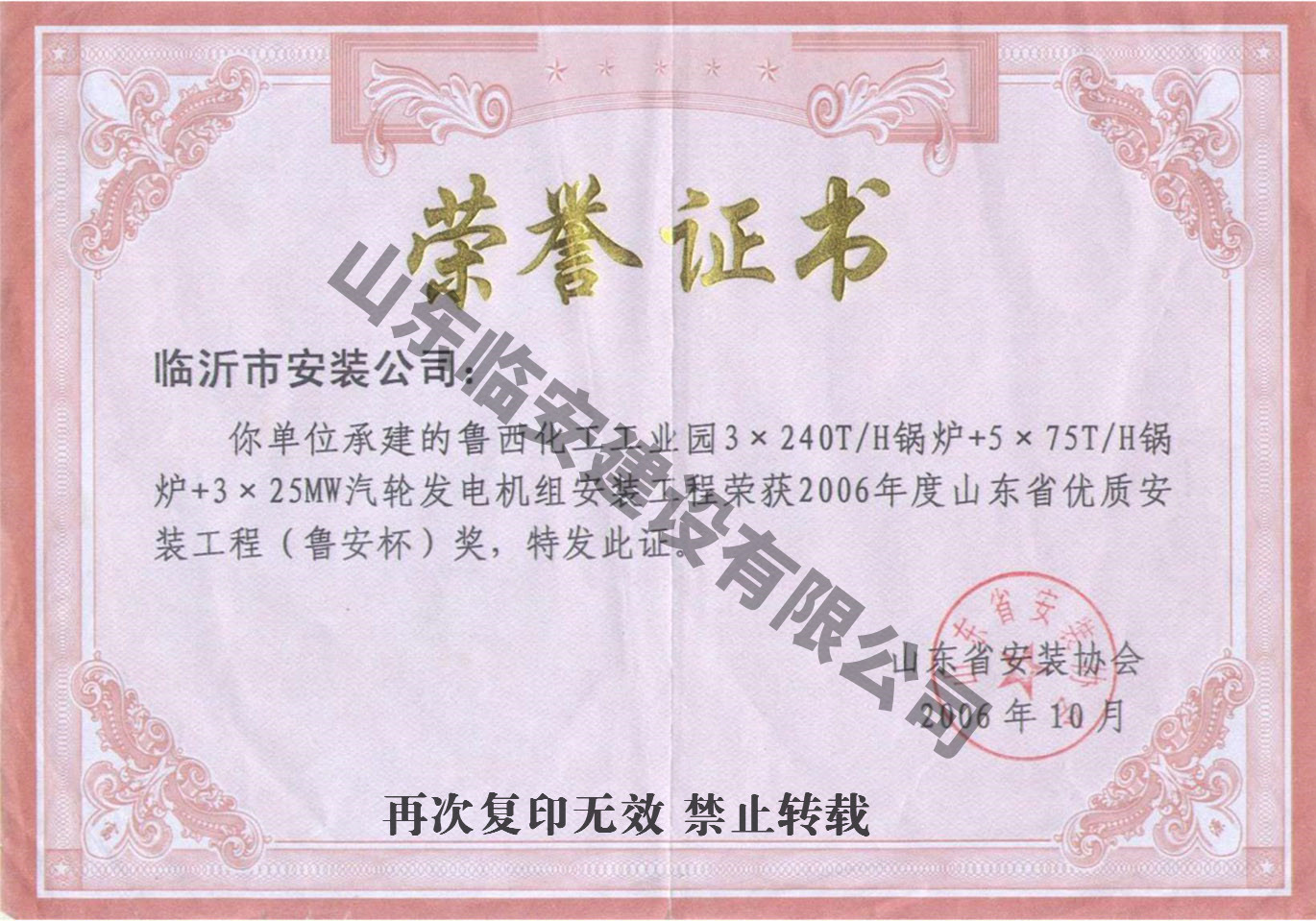 山東臨安建設(shè)有限公司(原名臨沂市安裝公司)始建于一九六六年,是由老國企改制的股份制企業(yè),公司總部位于羅莊區(qū)通達(dá)路211號(hào),現(xiàn)有職工1000余名,各類工程經(jīng)濟(jì)技術(shù)人員816名,其中高中級(jí)職稱64名,初級(jí)職稱204人。主要從事機(jī)電工程施工總承包,電力施工總承包,石油化工施工總承包,建筑裝飾裝修施工總承包,鍋爐安裝、改造I級(jí)(參數(shù)不限),GB1、GB2(2)級(jí)、GC1級(jí)、GD1級(jí)壓力管道安裝,起重機(jī)械B級(jí)安裝,電力設(shè)施承裝、承試,并取得了GB/T19001-2008質(zhì)量管理體系認(rèn)證證書、GB/T28001-2011職業(yè)健康安全管理體系認(rèn)證證書、GB/T24001-2004環(huán)境管理體系認(rèn)證證書,資信等級(jí)“AAA”級(jí)。